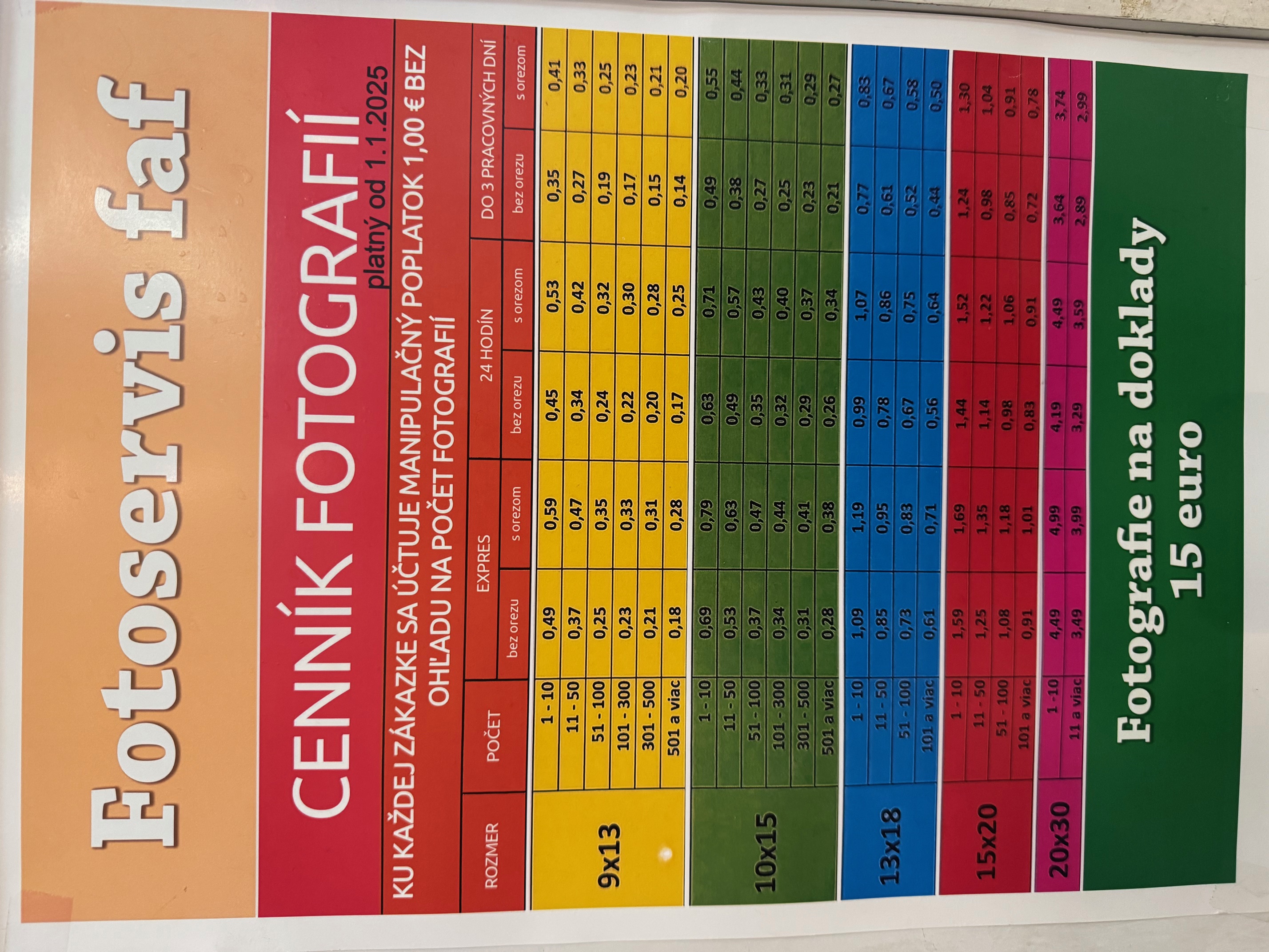 Cenník fotografických služieb
